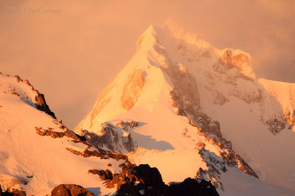 Al sur del continente sudamericano, haciendo frontera entre Chile y Argentina, se alza el monte FITZ ROY a unos 3375 msnm, junto a su séquito de Agujas, en pleno corazón del Parque Nacional de los Glaciares y Parque Nacional Bernardo O´Higgings.